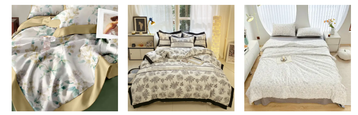 キルトの最上層はパッチワーク、刺繍、その他のデザインで飾られることが多く、独特の美しさを与えています。中間層 (中綿) は断熱性を提供し、最下層は通常、すべてをまとめるしっかりとした生地です。キルトはカジュアルな寝室からフォーマルなゲストルームまで、さまざまな環境で使用され、あらゆる空間に機能とスタイルの両方を加えます。